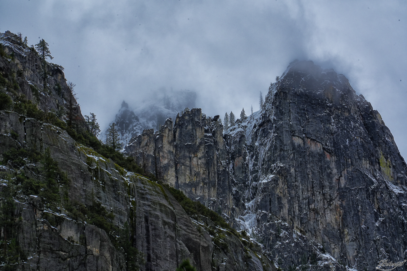 Looking a mile up from the valley floor at the cliffs around us