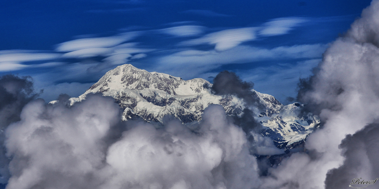 Breaking through the clouds, Mt. Denali, the tallest mountain in North America