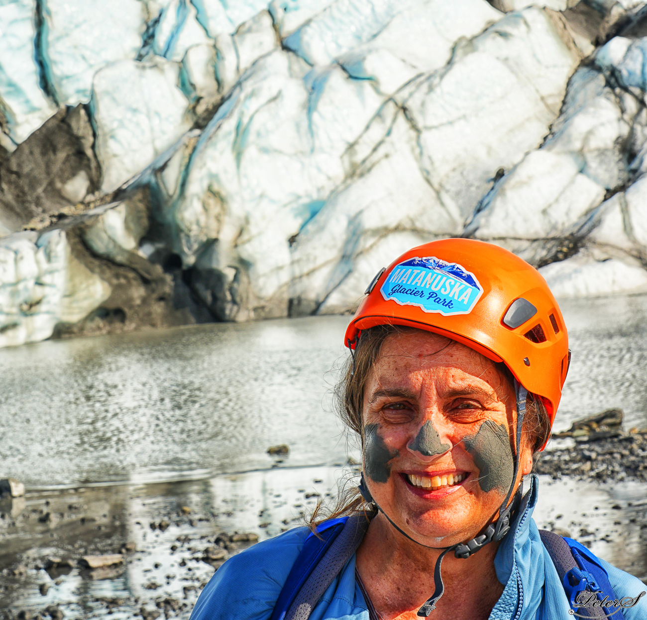 Over thousands of years, the glacier churns rocks into a fine mud called glacial fluor. Women smear it on their face to be pretty.
