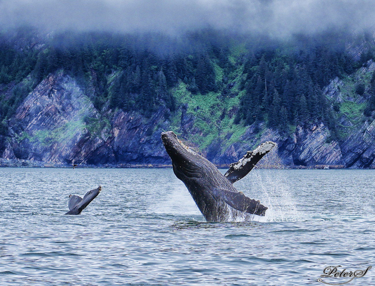 A humpback puts a few tons in the air.