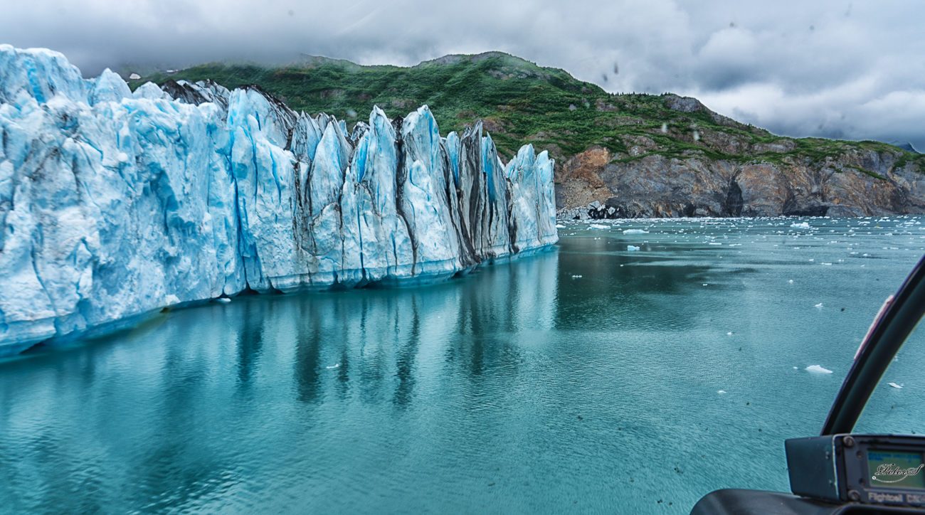 Flying along below the top of the ice wall