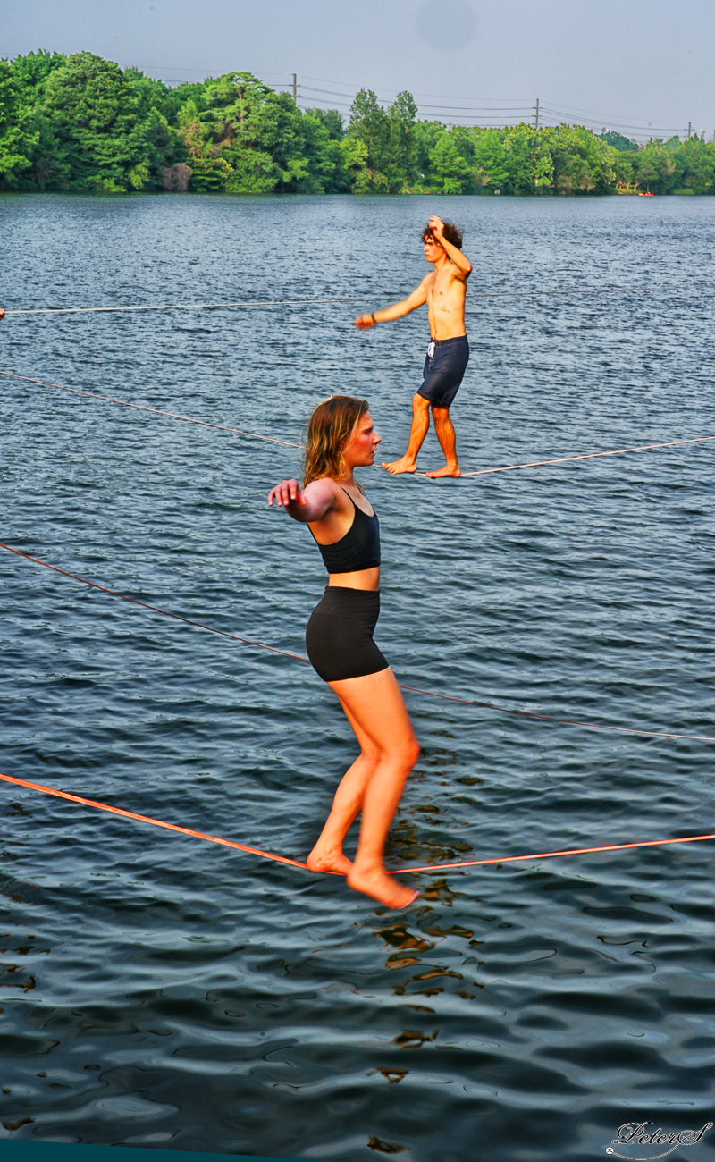 Rope walkers above the lake