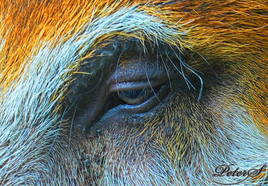The red river hog has a quiet thought.