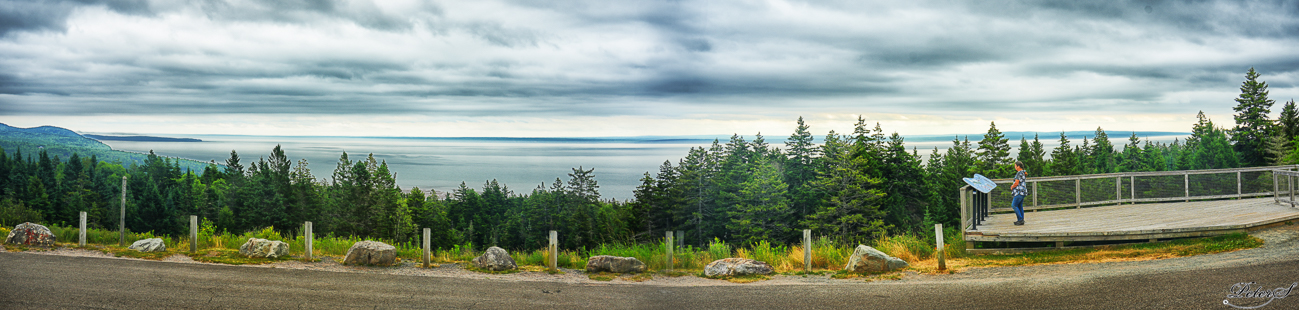 Edi reads a plaque about the Bay of Fundy