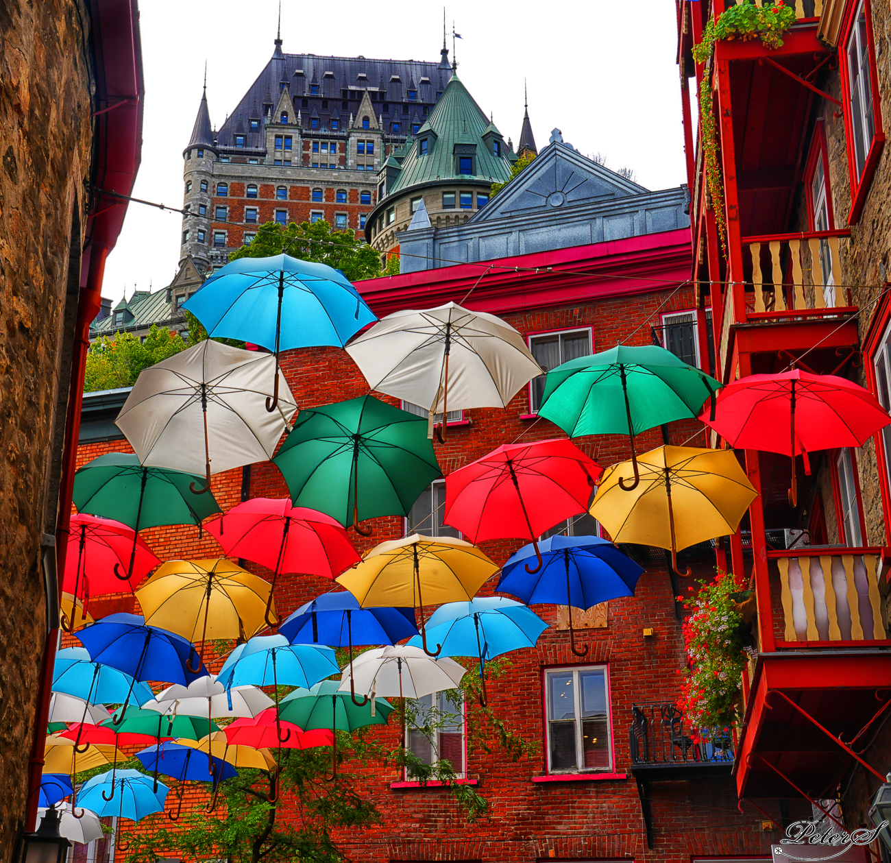 The European habit of hanging umbrellas over cafes