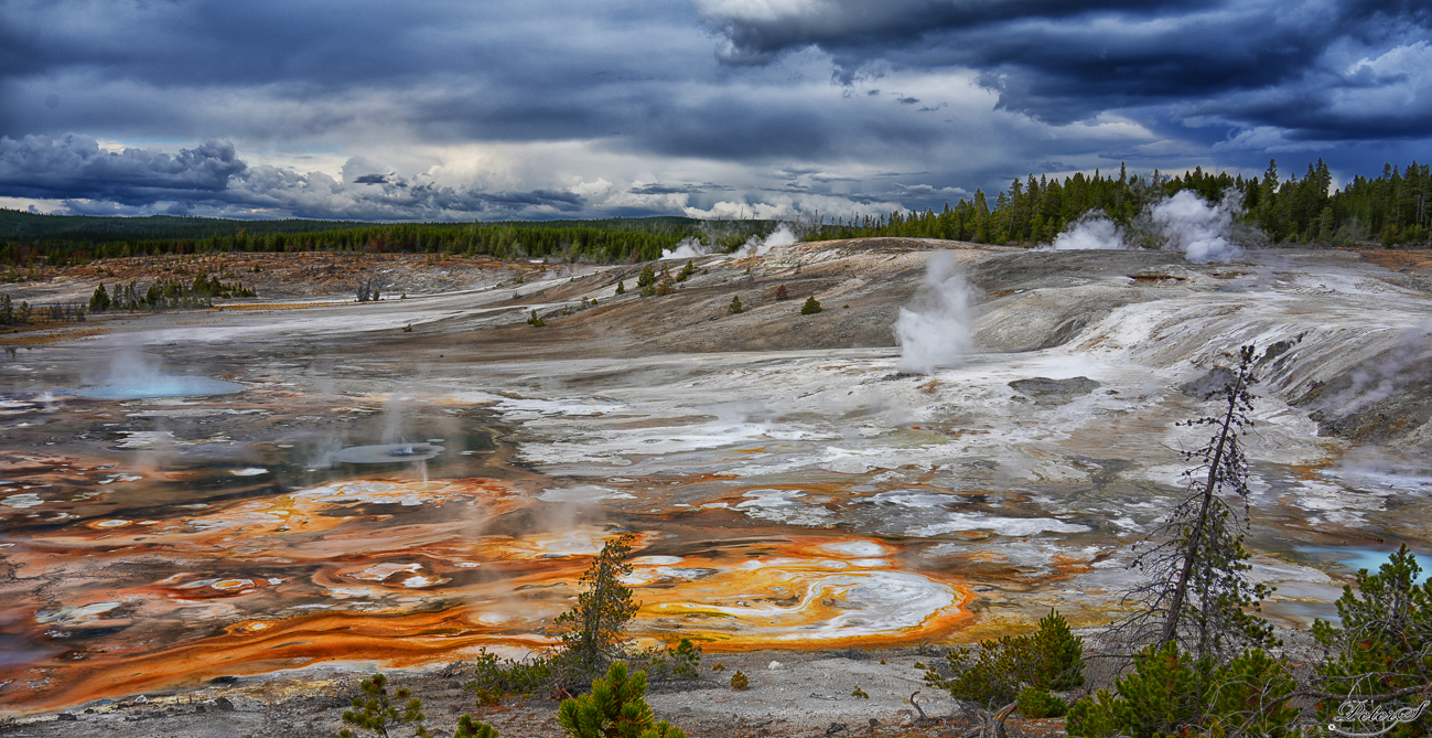 The earth was poked full of holes with steam and mud bubbling.