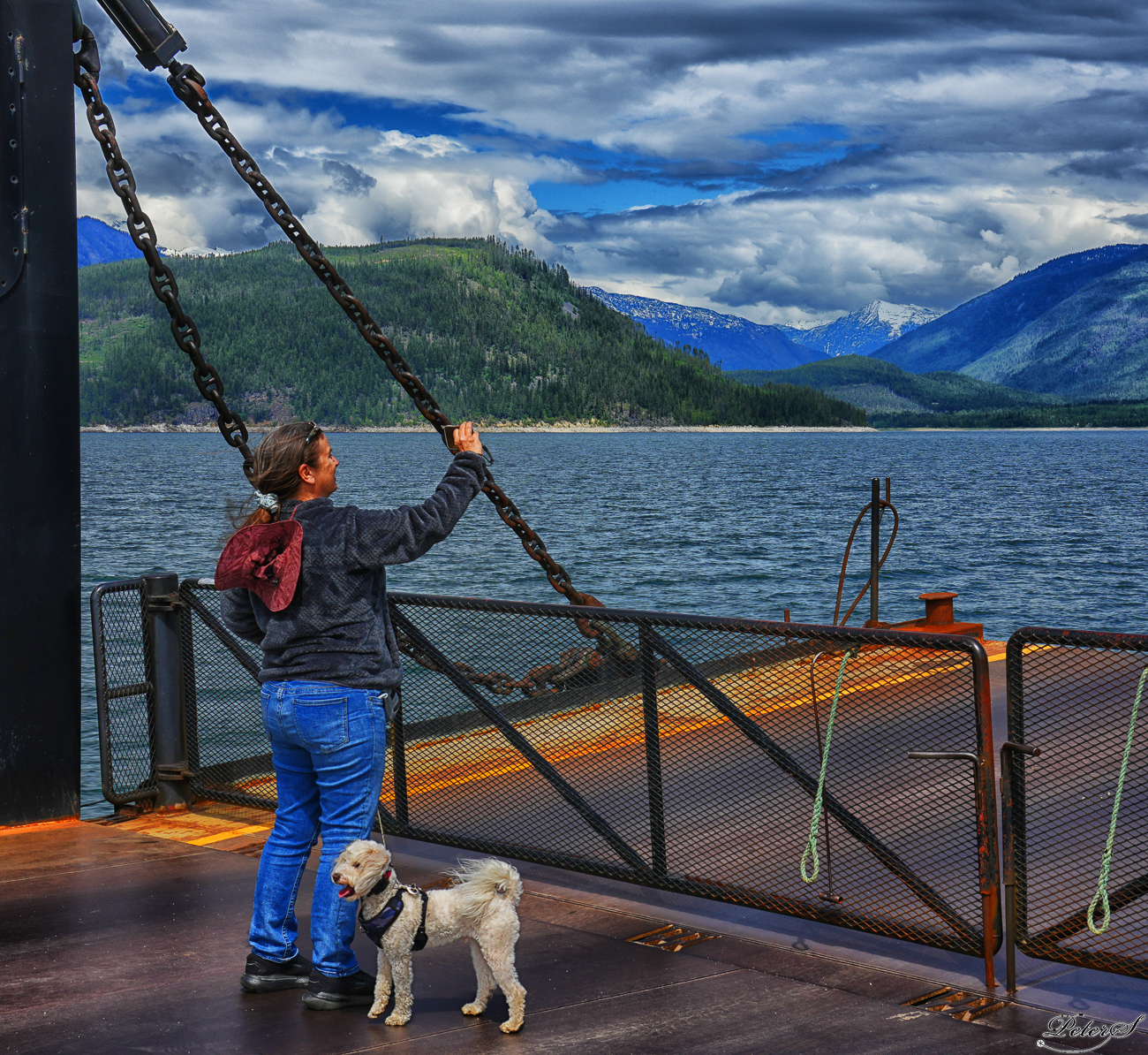 Edi knows what to do on a ferry ride across the upper Columbia River where it is miles wide.