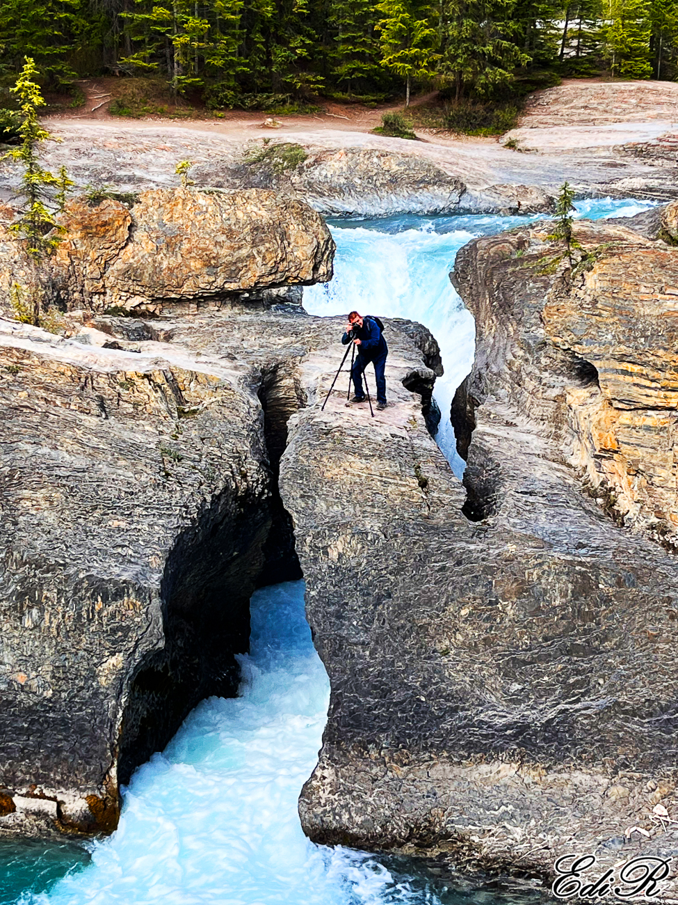 Peter atop the Natural Bridge chutes at Yoho National Park