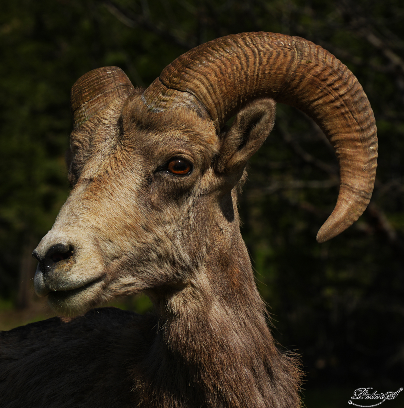 A big horned sheep presents his implement of destruction should I get out of hand.