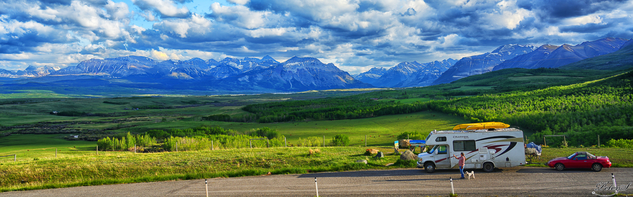Placard stop in Waterton National Park looking across the Montana border at Glacial National Park