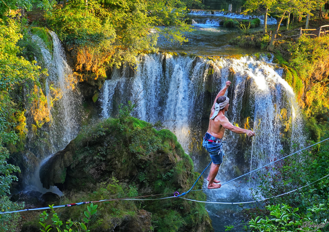 The waterfall walker fades off into the sunset