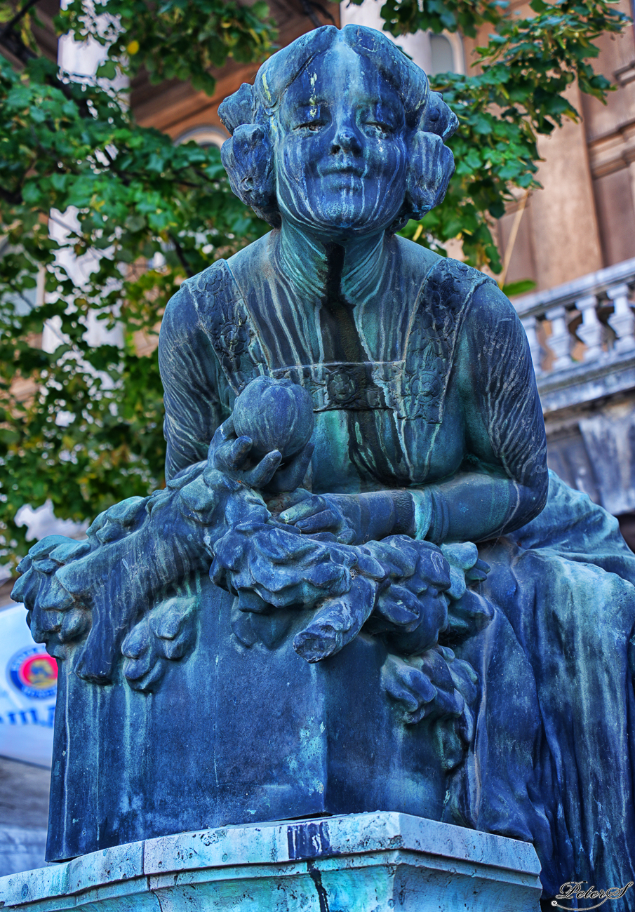 Not a famous general, just a happy gal selling apples in spite of the pigeons