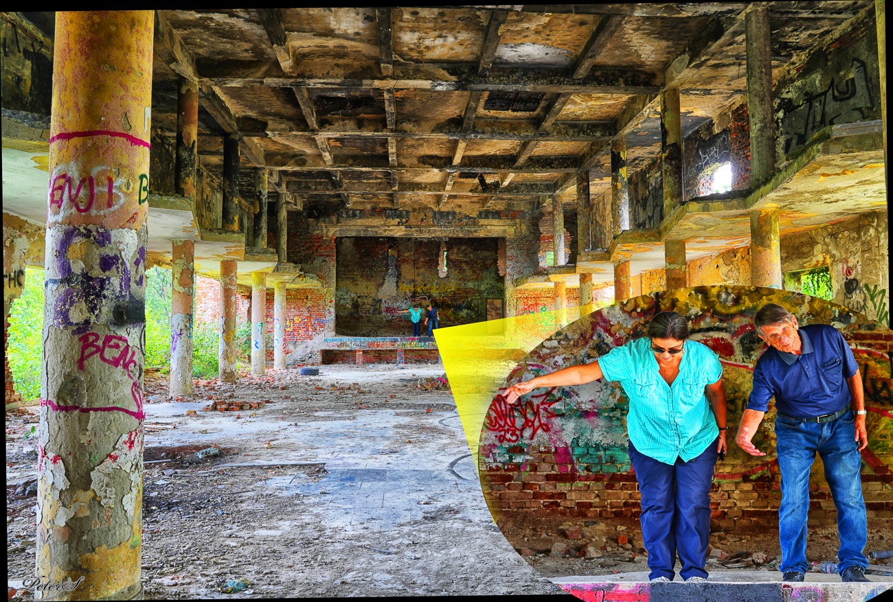 Edi and Béla take a bow in what is left of the theater where the Soviet troops used to have a good time.