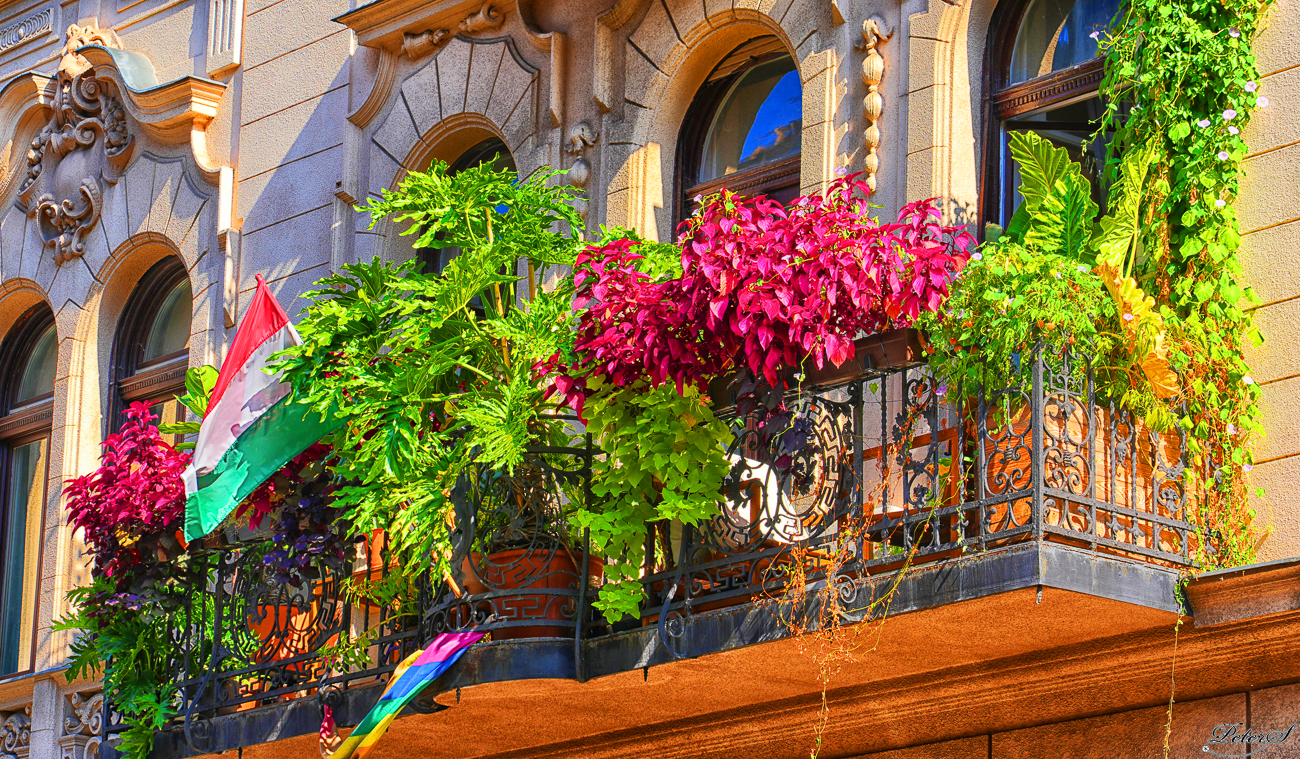 A festive downtown balcony